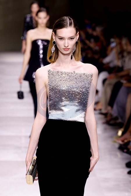 Défilé de mode Haute-Couture automne-hiver 2024/2025 "Armani Privé” lors de la Fashion Week de Paris le 25 juin 2024. Armani Privé" Autumn-Winter 2024/2025 Haute Couture fashion show at Paris Fashion Week on 25 June 2024.