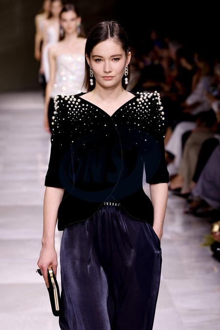 Défilé de mode Haute-Couture automne-hiver 2024/2025 "Armani Privé” lors de la Fashion Week de Paris le 25 juin 2024. Armani Privé" Autumn-Winter 2024/2025 Haute Couture fashion show at Paris Fashion Week on 25 June 2024.