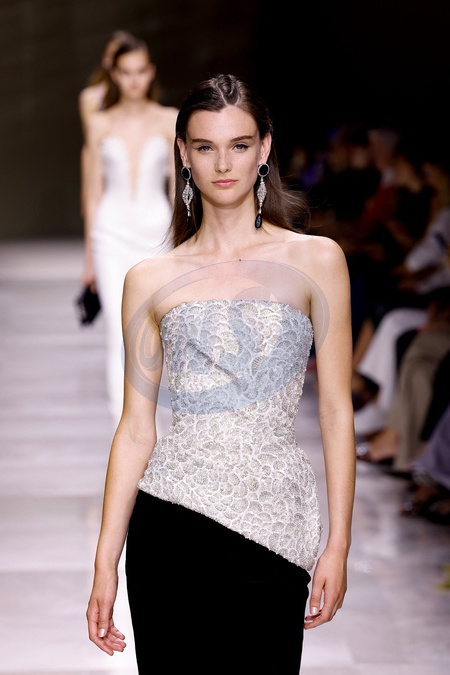 Défilé de mode Haute-Couture automne-hiver 2024/2025 "Armani Privé” lors de la Fashion Week de Paris le 25 juin 2024. Armani Privé" Autumn-Winter 2024/2025 Haute Couture fashion show at Paris Fashion Week on 25 June 2024.