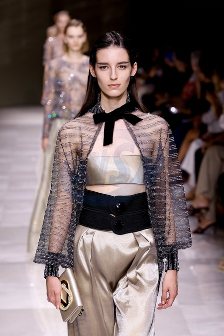 Défilé de mode Haute-Couture automne-hiver 2024/2025 "Armani Privé” lors de la Fashion Week de Paris le 25 juin 2024. Armani Privé" Autumn-Winter 2024/2025 Haute Couture fashion show at Paris Fashion Week on 25 June 2024.