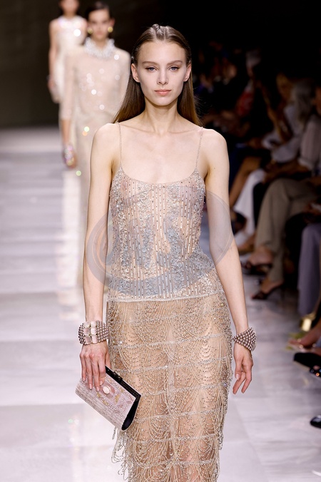 Défilé de mode Haute-Couture automne-hiver 2024/2025 "Armani Privé” lors de la Fashion Week de Paris le 25 juin 2024. Armani Privé" Autumn-Winter 2024/2025 Haute Couture fashion show at Paris Fashion Week on 25 June 2024.