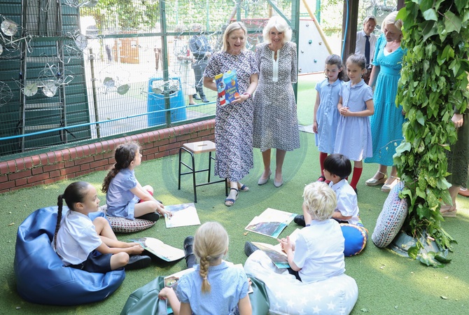 Królowa Camilla Kamila odwiedza szkołę podstawową Christ Church C Of E w Chelsea