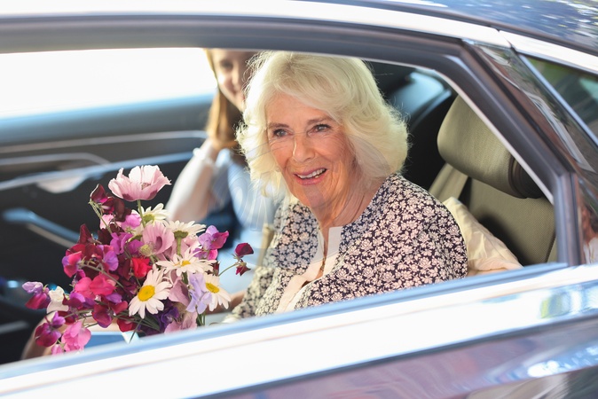 Queen Camilla smiles as she departs after her visit to Christ Church C of E Primary School's Literary Festival on June 26, 2024 in London, England. NO UK USE FOR 48 HOURS, Credit:Avalon.red / Avalon