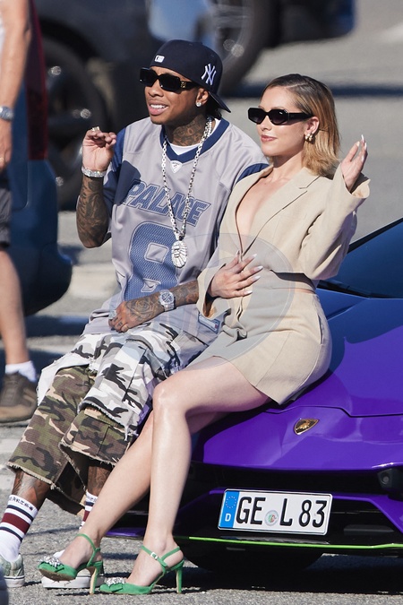 Exclusif - Le rappeur Tyga tourne un clip sur le port de Saint-Tropez avec pour partenaire, une Lamborghini Huracán EVO Spyder le 26 juin 2024. Rapper Tyga shoots a video on the port of Saint-Tropez with a Lamborghini Huracán EVO Spyder as his partner on 26 June 2024.