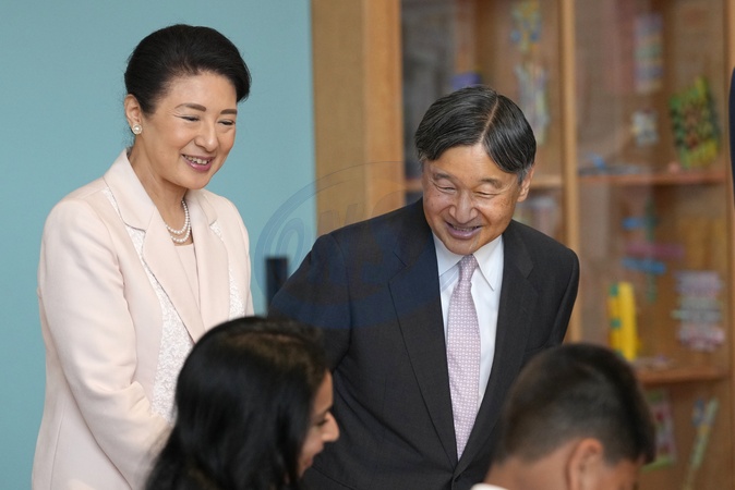 Japans Emperor Naruhito and Empress Masako watch children from Cayley Primary School in an origami making session at the Young V&A Museum in Bethnal Green in London, Thursday, June 27, 2024. NO UK USE FOR 48 HOURS, Credit:Avalon.red / Avalon