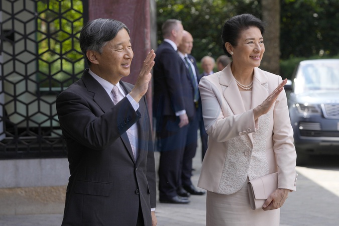 Japans Emperor Naruhito and Empress Masako wave at the crowd as they arrive for a visit to the Young V&A Museum in Bethnal Green, London, Thursday, June 27, 2024. NO UK USE FOR 48 HOURS