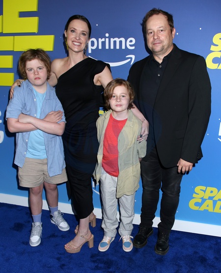 Liz W. Garcia, Joshua Harto and sons August and Wilder attending the 'Space Cadet' New York Premiere held at Metrograph on June 27, 2024 in New York City, NY©Steven Bergman/AFF-USA.COM