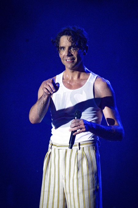 Mika sur la scène du "Printemps de Perouges" au Château de Saint-Maurice-de-Remens, le 27 juin 2024. Mika on stage at "Printemps de Perouges” at the Château de Saint-Maurice-de-Remens, June 27, 2024.