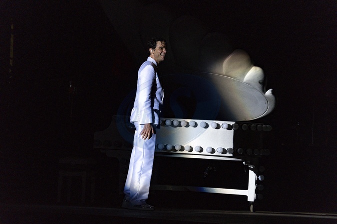 Mika sur la scène du "Printemps de Perouges" au Château de Saint-Maurice-de-Remens, le 27 juin 2024. Mika on stage at "Printemps de Perouges” at the Château de Saint-Maurice-de-Remens, June 27, 2024.
