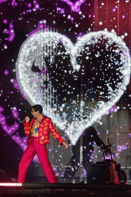 Mika sur la scène du "Printemps de Perouges" au Château de Saint-Maurice-de-Remens, le 27 juin 2024. Mika on stage at "Printemps de Perouges” at the Château de Saint-Maurice-de-Remens, June 27, 2024.
