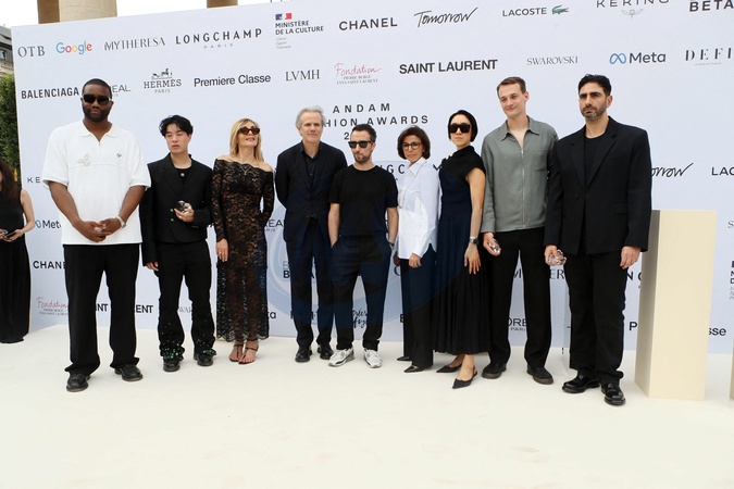 Semi-exclusif - Emeric Tchatchoua, Edmond Luu, Nathalie Dufour, Guillaume Houzé, Anthony Vaccarello, Rachida Dati, Eva Chen, Christian Heikoop and Christopher Esber - 35ème édition des "Trophées ANDAM" dans les jardins du Palais Royal à Paris, France, le 27 juin 2024. © Christophe Clovis / Bestimage Semi Exclusive 35th ANDAM Awards in the gardens of the Palais Royal in Paris on june 27 2024