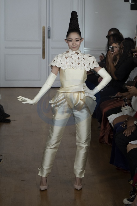 Un mannequin/modèle pendant le défilé de mode Ayissi Haute-Couture automne-hiver 2024/2025 lors de la Fashion Week de Paris, France, le 25 juin 2024. A model walks the runway during the Ayissi Haute Couture Fall/Winter 2024-2025 show as part of Paris Fashion Week on June 25, 2024 in Paris, France