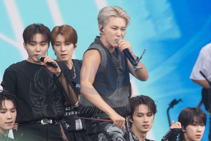 Hoshi of South Korean K-Pop band Seventeen performs on The Pyramid Stage at Glastonbury Festival 2024 at Worthy Farm, Pilton in Glastonbury, England, UK on Friday 28 June 2024., Credit:Justin Ng / Avalon
