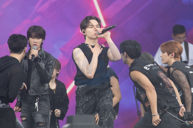 South Korean K-Pop band Seventeen perform on The Pyramid Stage at Glastonbury Festival 2024 at Worthy Farm, Pilton in Glastonbury, England, UK on Friday 28 June 2024., Credit:Justin Ng / Avalon