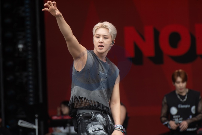 Hoshi of South Korean K-Pop band Seventeen performs on The Pyramid Stage at Glastonbury Festival 2024 at Worthy Farm, Pilton in Glastonbury, England, UK on Friday 28 June 2024., Credit:Justin Ng / Avalon