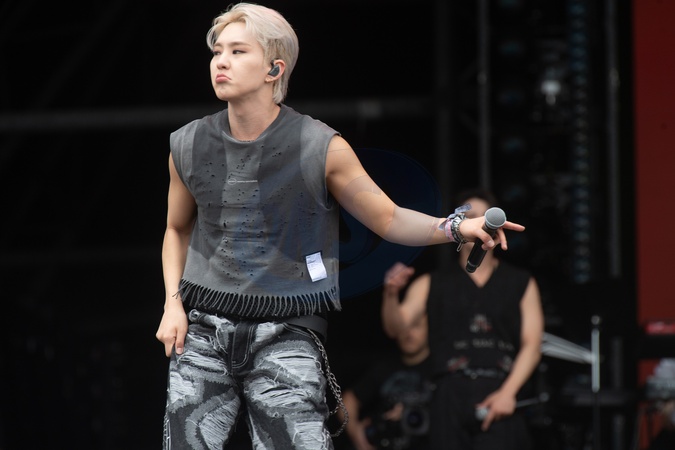 Hoshi of South Korean K-Pop band Seventeen performs on The Pyramid Stage at Glastonbury Festival 2024 at Worthy Farm, Pilton in Glastonbury, England, UK on Friday 28 June 2024., Credit:Justin Ng / Avalon