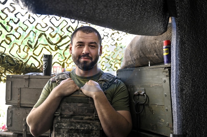 DONETSK REGION, UKRAINE - JUNE 13, 2024 - An aerial reconnaissance man of the 148th separate artillery brigade of the Ukrainian Air Assault Forces poses for a picture, Donetsk region, eastern Ukraine, Credit:Dmytro Smolienko / Avalon