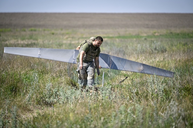 DONETSK REGION, UKRAINE - JUNE 13, 2024 - Aerial reconnaissance men of the 148th separate artillery brigade of the Ukrainian Air Assault Forces prepare a drone for launch, Donetsk region, eastern Ukraine, Credit:Dmytro Smolienko / Avalon
