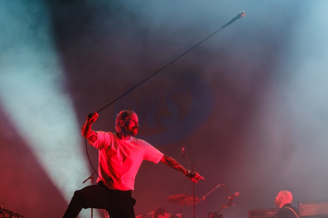 Joe Talbot of Bristol band IDLES as the band headlines the Other Stage on the Friday night during 2024 Glastonbury Festival on Friday 28 June 2024 at Worthy Farm, Glastonbury. ., Credit:Julie Edwards / Avalon