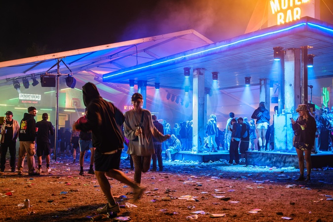 Late night atmosphere on Friday night during 2024 Glastonbury Festival on Friday 28 June 2024 at Worthy Farm, Glastonbury. ., Credit:Julie Edwards / Avalon