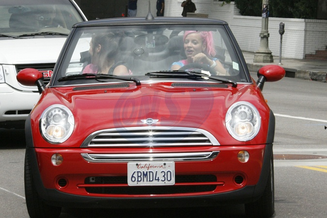 Lily Allen w swoim samochodzie Mini Cooper, Los Angeles