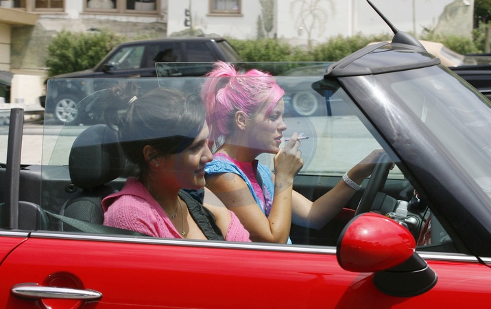 Lily Allen w swoim samochodzie Mini Cooper, Los Angeles