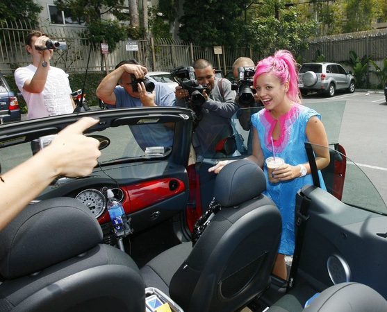 Lily Allen w swoim samochodzie Mini Cooper, Los Angeles