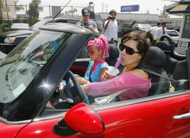 Lily Allen w swoim samochodzie Mini Cooper, Los Angeles
