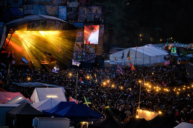 A view over the park as the sun sets during 2024 Glastonbury Festival on Saturday 29 June 2024 at Worthy Farm, Glastonbury. ., Credit:Julie Edwards / Avalon