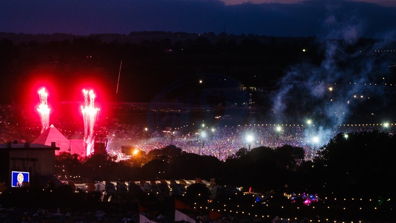 The view from park hill towards the Pyramid Stage as Coldplay headline on the Saturday during 2024 Glastonbury Festival on Saturday 29 June 2024 at Worthy Farm, Glastonbury. ., Credit:Julie Edwards / Avalon