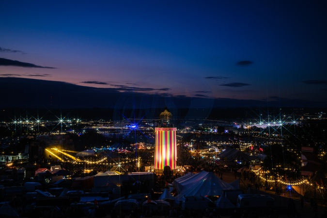 A view over the festival from the park hill as the sun sets during 2024 Glastonbury Festival on Saturday 29 June 2024 at Worthy Farm, Glastonbury. ., Credit:Julie Edwards / Avalon