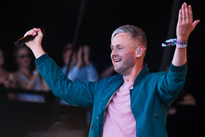 Tom Chaplin of British band Keane seen performing on the Pyramid Stage on the Saturday of 2024 Glastonbury Festival held at Worthy Farm in Glastonbury, UK on 29 Jun , 2024., Credit:Julie Edwards / Avalon