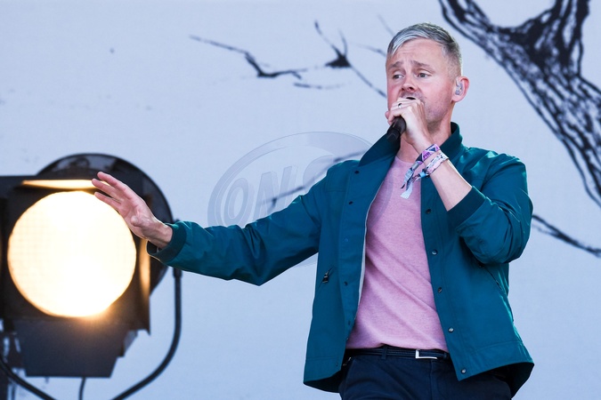 Tom Chaplin of British band Keane seen performing on the Pyramid Stage on the Saturday of 2024 Glastonbury Festival held at Worthy Farm in Glastonbury, UK on 29 Jun , 2024., Credit:Julie Edwards / Avalon