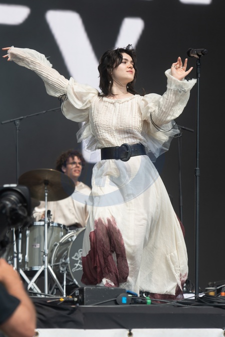 Lead singer Abigail Morris of English indie band The Last Dinner Party performs on the Other Stage at Glastonbury Festival 2024 Saturday at Worthy Farm, Pilton in Glastonbury, England, UK on Saturday 29 June 2024., Credit:Justin Ng / Avalon