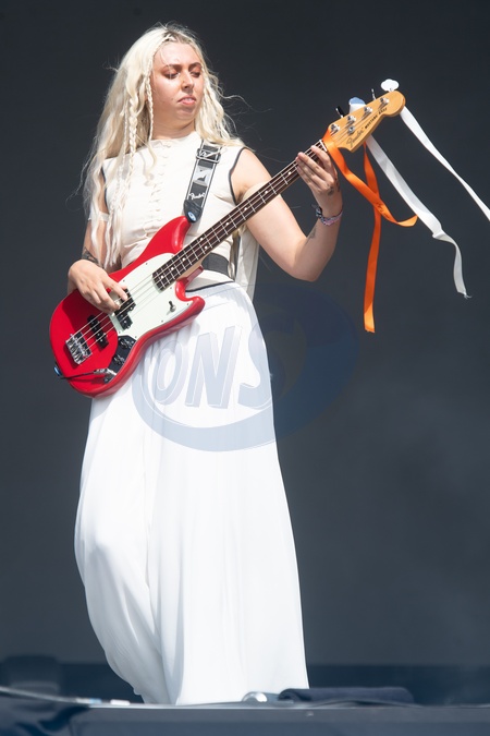 Bassist Georgia Davies of English indie band The Last Dinner Party performs on the Other Stage at Glastonbury Festival 2024 Saturday at Worthy Farm, Pilton in Glastonbury, England, UK on Saturday 29 June 2024., Credit:Justin Ng / Avalon