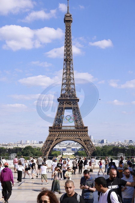 Pour les Jeux olympiques et paralympiques de Paris 2024, c'est la tour Eiffel qui a été choisie pour porter les anneaux olympiques, à Paris, France, le 23 juin 2024. © Christophe Aubert via Bestimage Eiffel Tower to carry Olympic rings for Paris 2024 Olympic and Paralympic Games, in Paris, France, on June 29 2024.