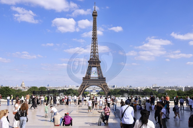Pour les Jeux olympiques et paralympiques de Paris 2024, c'est la tour Eiffel qui a été choisie pour porter les anneaux olympiques, à Paris, France, le 23 juin 2024. © Christophe Aubert via Bestimage Eiffel Tower to carry Olympic rings for Paris 2024 Olympic and Paralympic Games, in Paris, France, on June 29 2024.