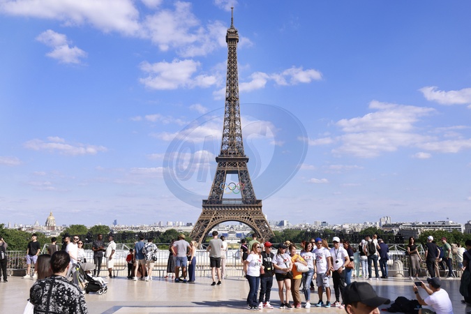 Pour les Jeux olympiques et paralympiques de Paris 2024, c'est la tour Eiffel qui a été choisie pour porter les anneaux olympiques, à Paris, France, le 23 juin 2024. © Christophe Aubert via Bestimage Eiffel Tower to carry Olympic rings for Paris 2024 Olympic and Paralympic Games, in Paris, France, on June 29 2024.