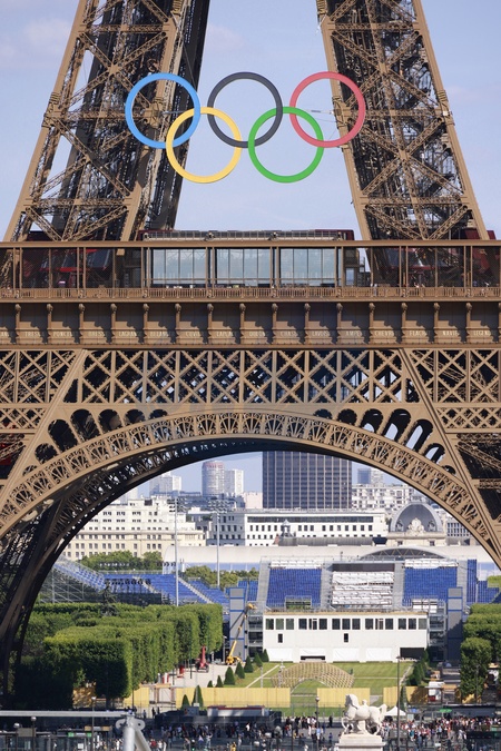 Pour les Jeux olympiques et paralympiques de Paris 2024, c'est la tour Eiffel qui a été choisie pour porter les anneaux olympiques, à Paris, France, le 23 juin 2024. © Christophe Aubert via Bestimage Eiffel Tower to carry Olympic rings for Paris 2024 Olympic and Paralympic Games, in Paris, France, on June 29 2024.