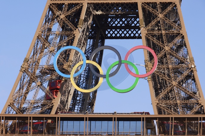 La tour Eiffel porte les anneaux olympiques pour Jeux Olympiques et Paralympiques de Paris 2024