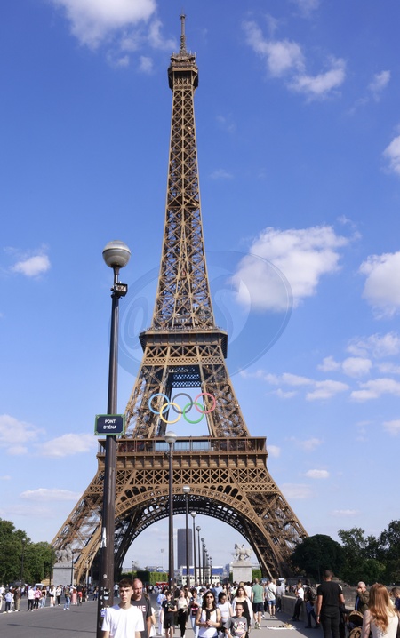 La tour Eiffel porte les anneaux olympiques pour Jeux Olympiques et Paralympiques de Paris 2024