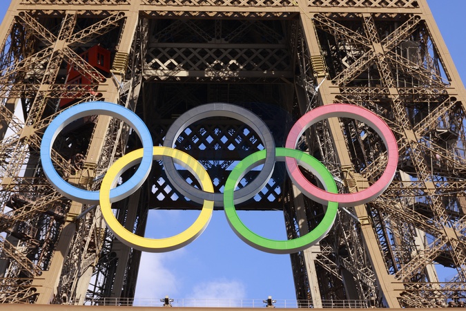 La tour Eiffel porte les anneaux olympiques pour Jeux Olympiques et Paralympiques de Paris 2024