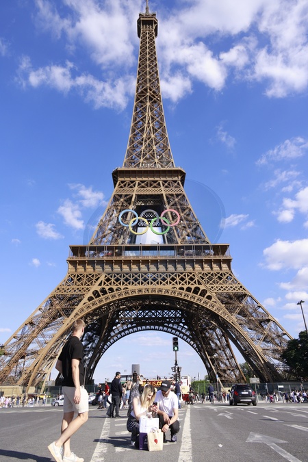 La tour Eiffel porte les anneaux olympiques pour Jeux Olympiques et Paralympiques de Paris 2024