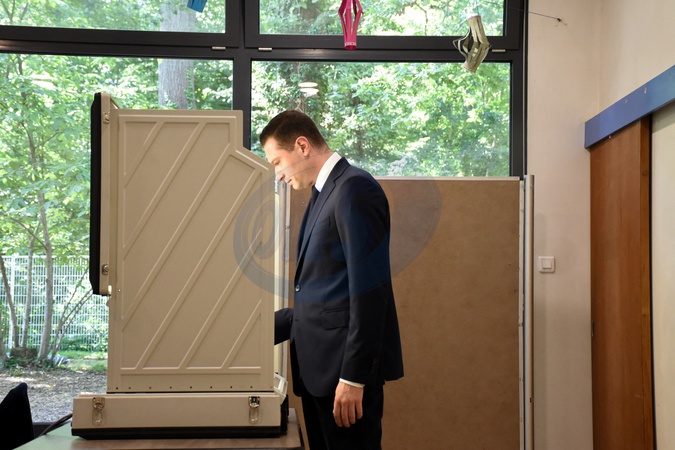 Jordan Bardella vote pour le premier tour des législatives à Garches