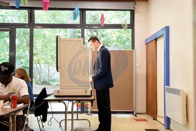 Le président du parti d'extrême droite Rassemblement national (RN) et député européen Jordan Bardella vote pour le premier tour des législatives à Garches banlieue de Paris, France, le 30 juin 2024. © Florian Poitout/Bestimage Jordan Bardella, voting in the hauts de seines in Garches as part of the first round of legislative elections, following the dissolution of the national assembly by French President, in Garches (suburb of Paris), France, on June 30, 2024.