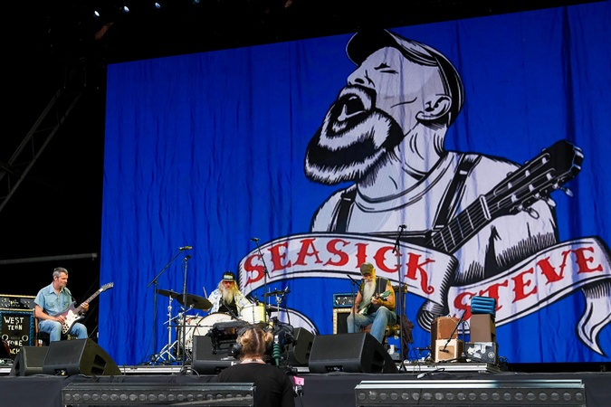 Seasick Steve seen performing on the Pyramid Stage on the Sunday of 2024 Glastonbury Festival held at Worthy Farm in Glastonbury, UK on 30 Jun , 2024., Credit:Julie Edwards / Avalon