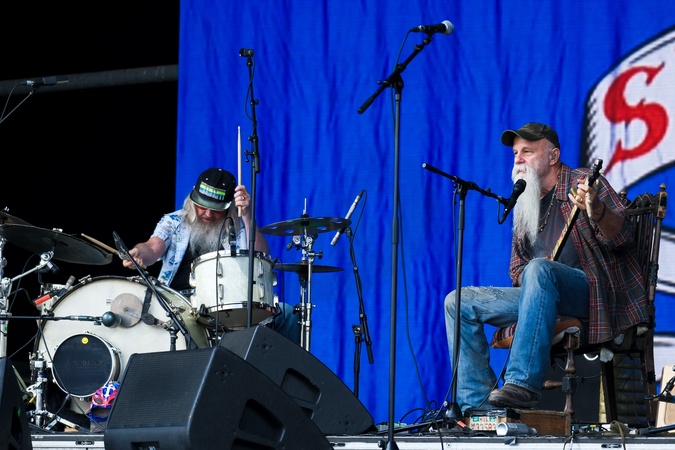 Dan Magnusson and Seasick Steve seen performing on the Pyramid Stage on the Sunday of 2024 Glastonbury Festival held at Worthy Farm in Glastonbury, UK on 30 Jun , 2024., Credit:Julie Edwards / Avalon