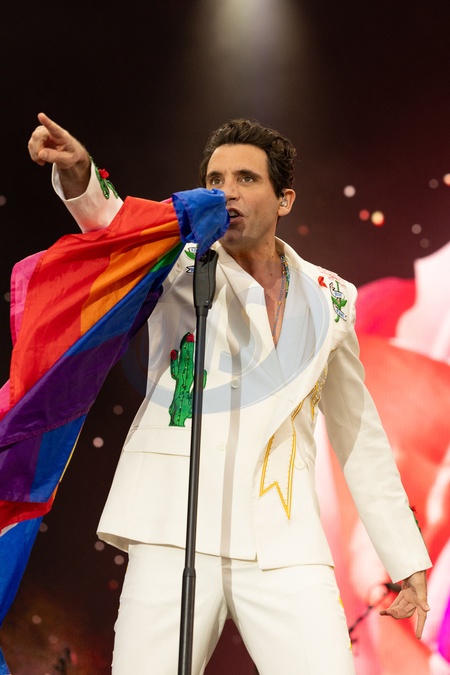 Mika en concert sur la scène du festival Solidays à Paris le 29 juin 2024. © Jeremy Melloul / Bestimage Mika performs on stage at the Solidays festival in Paris on 29 June 2024.