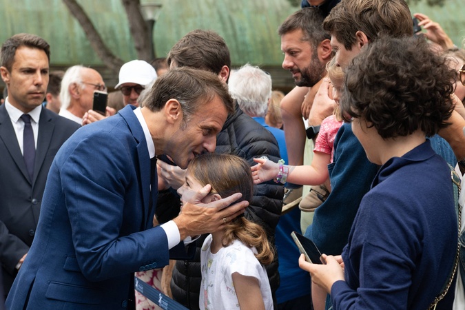 Le président Emmanuel Macron lors du vote pour le premier tour des élections législatives à la salle des Quatre Saisons au Touquet le 30 juin 2024 © Jeanne Accorsini / Pool / Bestimage French President Emmanuel Macron arrives in the polling station of le Touqet Paris Plage for the first round of early legislative elections. Crowd bath and selfie for the president with Le touquet people. Salle des Quatre Saisons, polling station in Le Touquet Paris Plage, northern France, Sunday June 30, 2024.//ACCORSINIJEANNE_VOTE.0011/Credit:JEANNE ACCORSINI/SIPA/2406301538