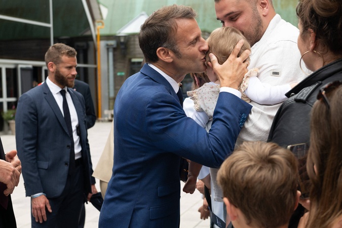 Le président Emmanuel Macron lors du vote pour le premier tour des élections législatives à la salle des Quatre Saisons au Touquet le 30 juin 2024 © Jeanne Accorsini / Pool / Bestimage French President Emmanuel Macron arrives in the polling station of le Touqet Paris Plage for the first round of early legislative elections. Crowd bath and selfie for the president with Le touquet people. Salle des Quatre Saisons, polling station in Le Touquet Paris Plage, northern France, Sunday June 30, 2024.//ACCORSINIJEANNE_VOTE.0012/Credit:JEANNE ACCORSINI/SIPA/2406301538